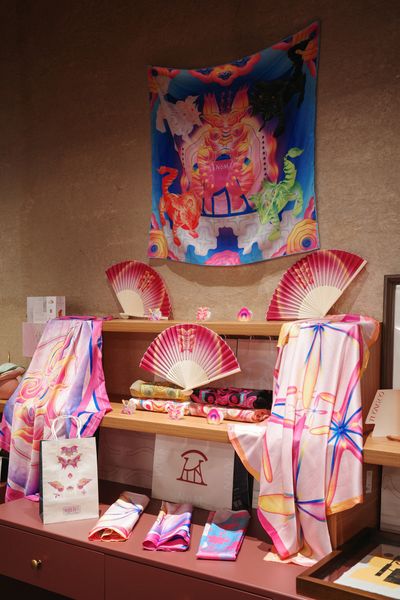 Bạn sẽ bắt gặp ở đây những họa tiết dân gian, những chất liệu quen thuộc của làng nghề, hay những chi tiết gợi nhớ đến nghệ thuật sân khấu truyền thống.